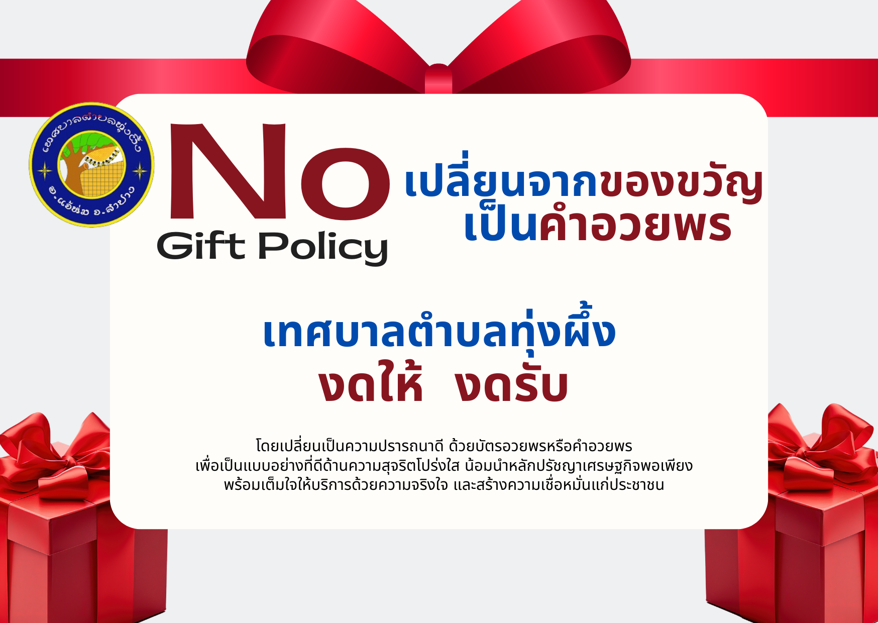 ประกาศเจตนารมณ์นโยบาย No Gift Policy จากการปฏิบัติหน้าที่ (ฉบับภาษาไทย)